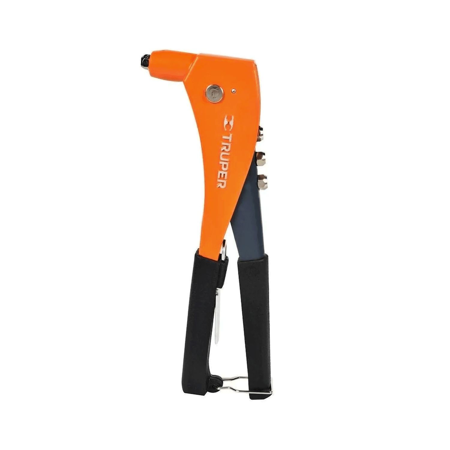 Remachadora Profesional Truper RE-9 4 Boquillas 10" Cuerpo fabricado en aluminio con cilindro de acero al carbono. Mordazas fabricadas en acero aleado para mayor resistencia. Mayor fuerza al remachar. Para la aplicación de remaches en cancelería de aluminio. Útil en talleres de hojalatería y carrocería.