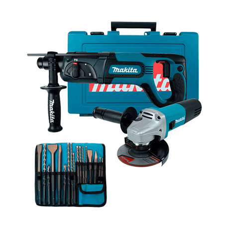Martillo Makita HR2475X4 + Esmeril Angular 9557NB + Brocas D-53637