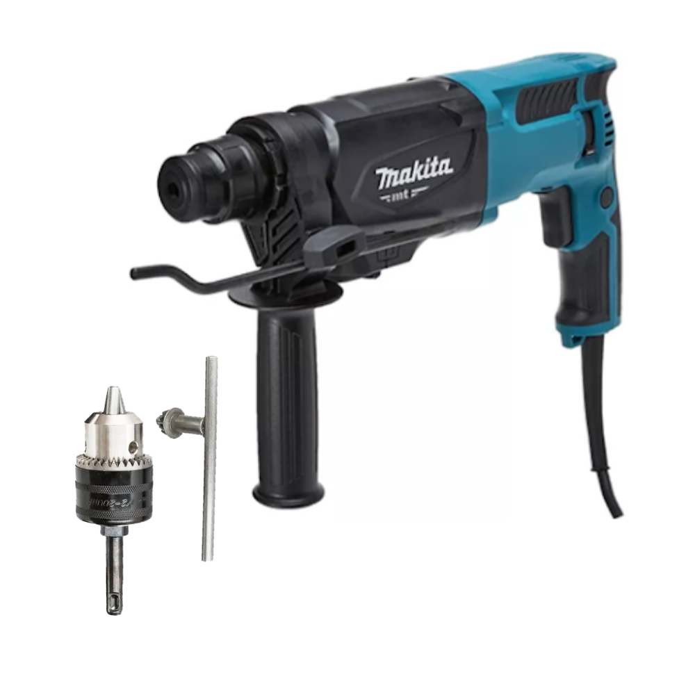 Combo Rotomartillo M8701B Makita + Broquero SDS PLUS potencia y versatilidad en un solo paquete, este rotomartillo cuenta con un motor de 6,2 Amperes, tres modos de operación (rotación, percusión y combinado), y un diseño ergonómico ideal para trabajos exigentes en concreto, madera y metal. El broquero SDS PLUS permite un cambio rápido de brocas, aumentando la eficiencia en tus proyectos. Perfecto para profesionales de la construcción y el bricolaje avanzado. ¡Haz tus perforaciones y demolición más rápidas y precisas con Makita! Compra ahora con garantía y envío inmediato.